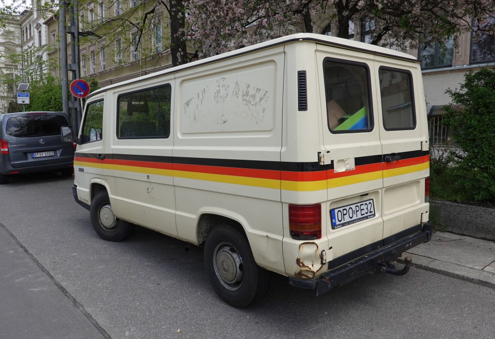 Den hatte ich schon mal 2019 fotografiert, damals allerdings aus einiger Entfernung. Hier noch mal eine aktuelle Nahaufnahme von heute Nachmittag. Als Pritschenwagen sieht man den MB 100 mittlerweile relativ selten. |