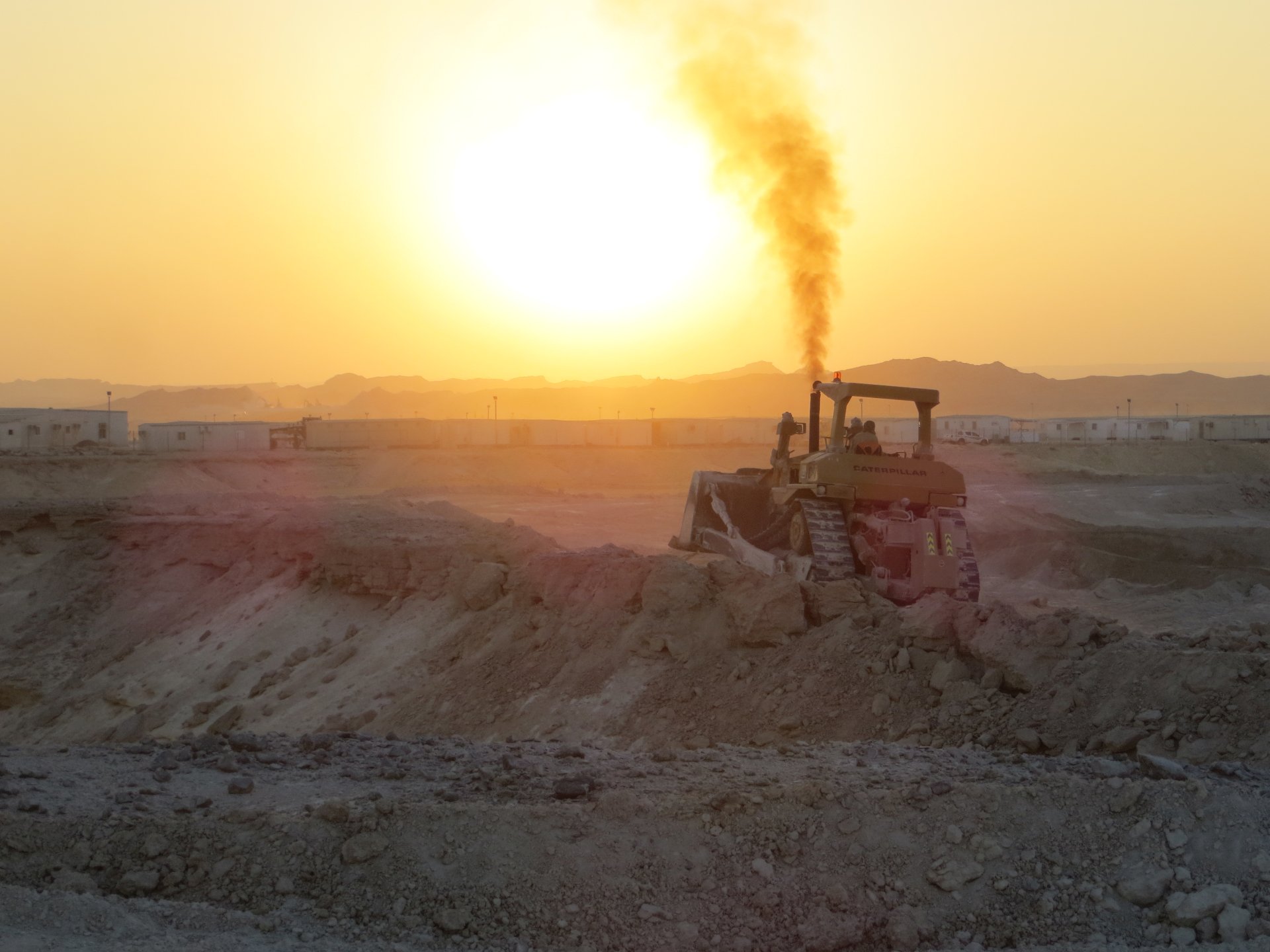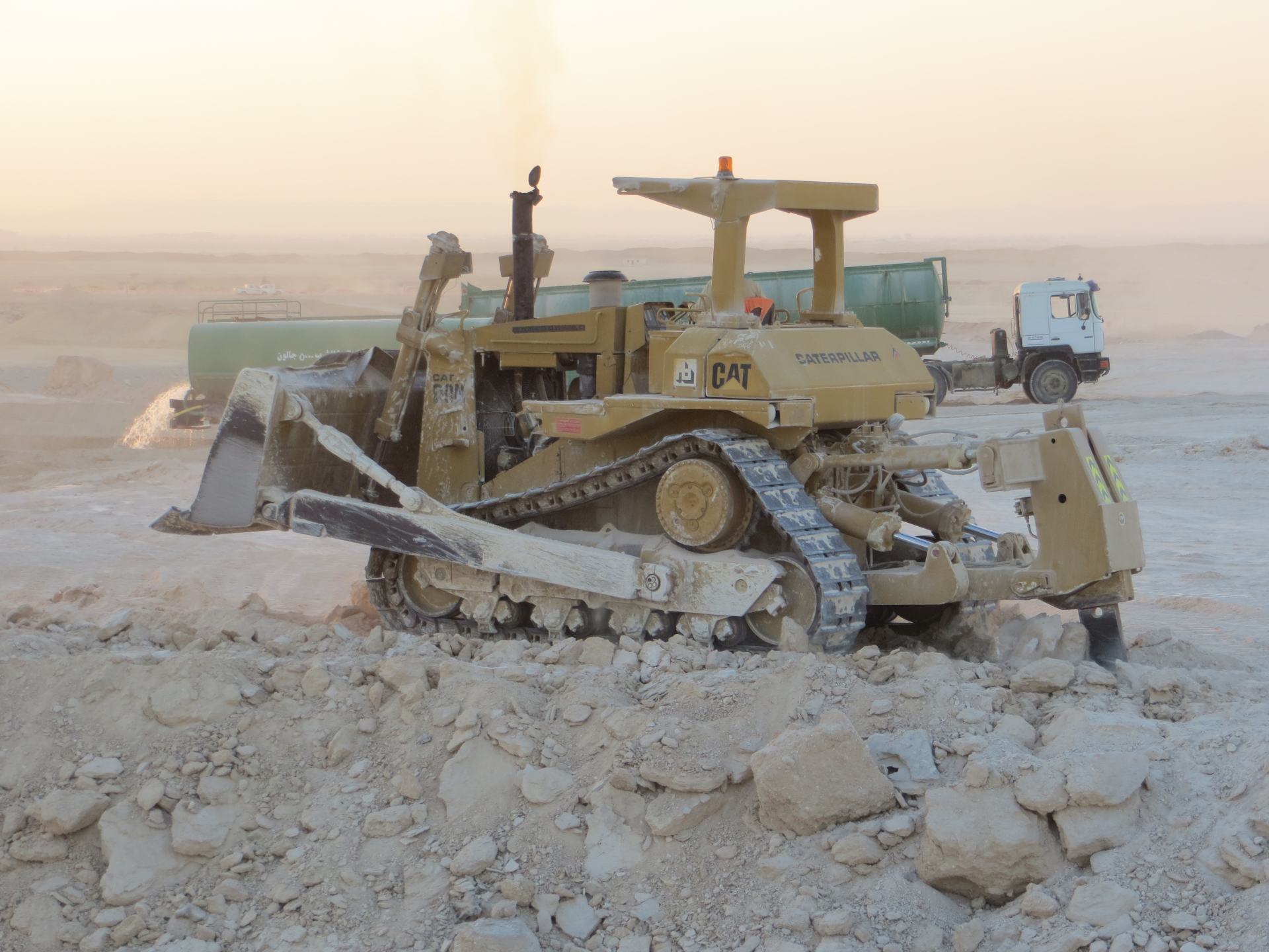 Cat D9N im Sonnenuntergang am Boden lockern.