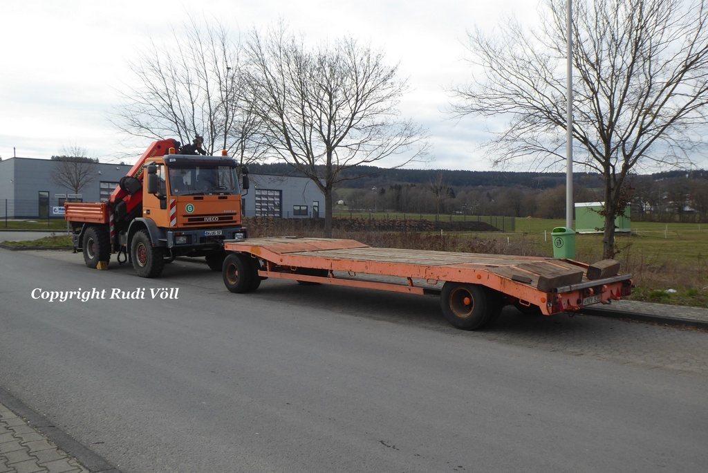 hier mal ein etwas wuchtigeres Exemplar, ein 135E23 als Zugmaschine mit Kran und passendem Tiefladeanhänger, entdeckt und fotografiert im März 2021 in Kempenich in der Nähe des Nürburgrings.
