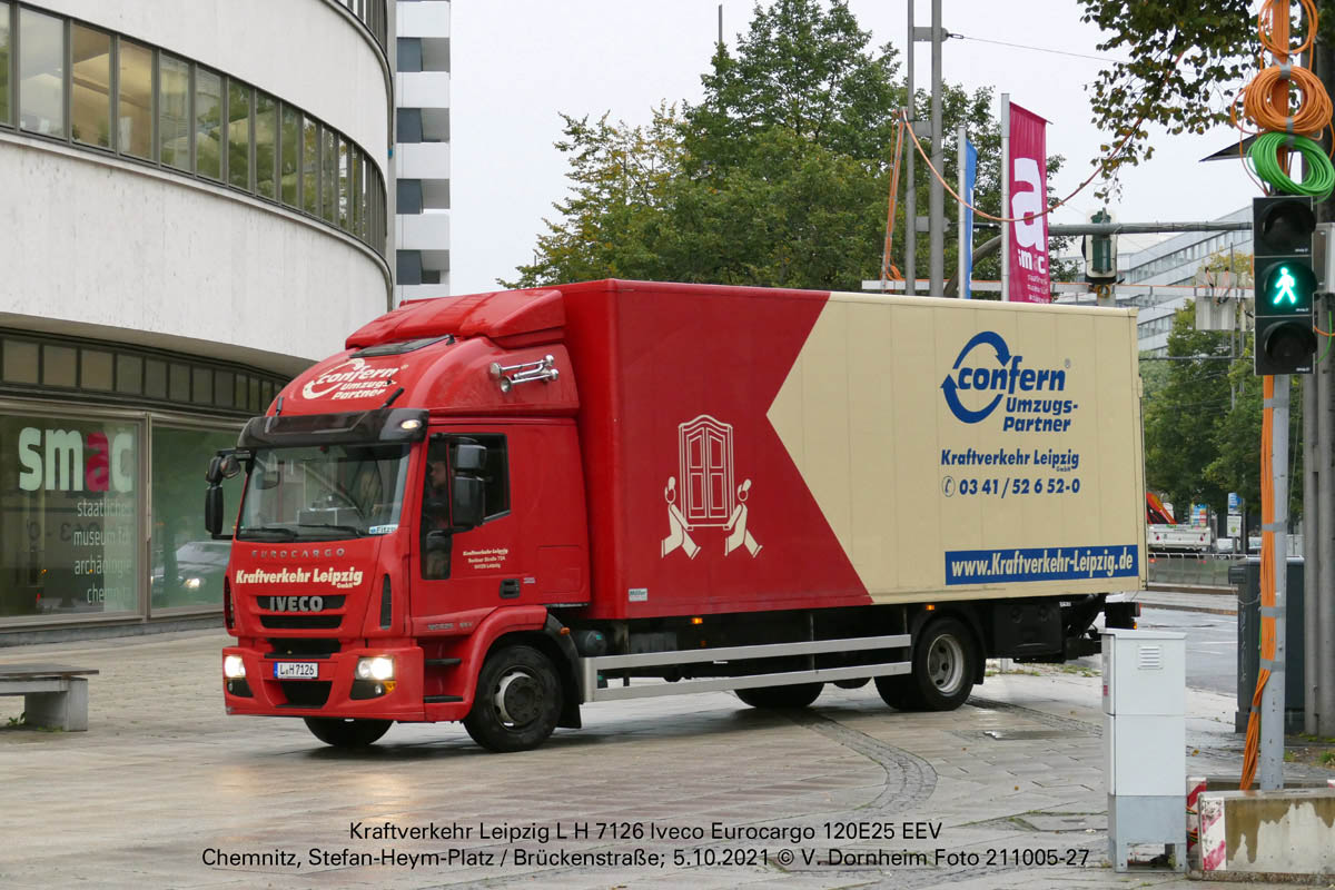 Kraftverkehr Leipzig L H 7126 Iveco Eurocargo 120E25 EEV am 5.10.2021 in Chemnitz.