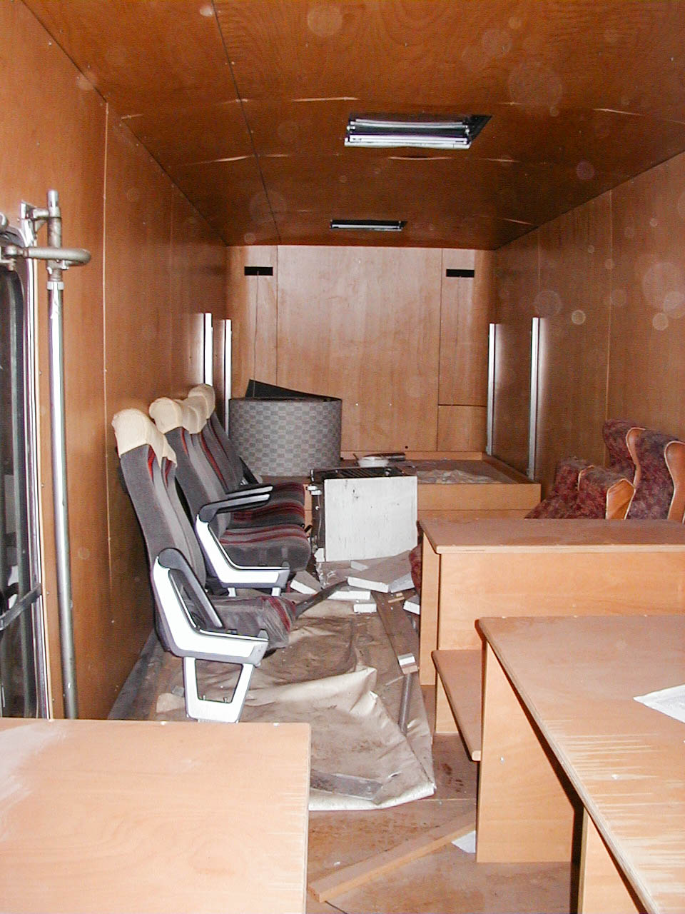 Für die Fahrer, denen der Weg nach Hause zwischen den Schichten zu weit war, wurde die Fahrbücherei zum Pennen mit Matratzen vollgepackt.
