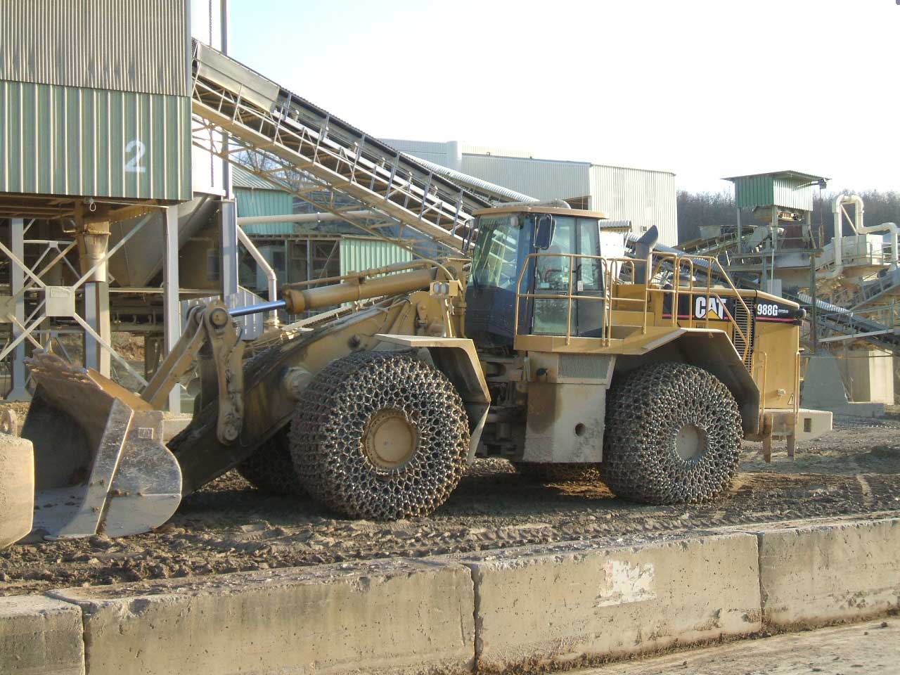 Caterpillar 988G in einem Schweizer Kieswerk. Auf dem ersten Bild ist die Grösse des Radladers gut zu erkennen.