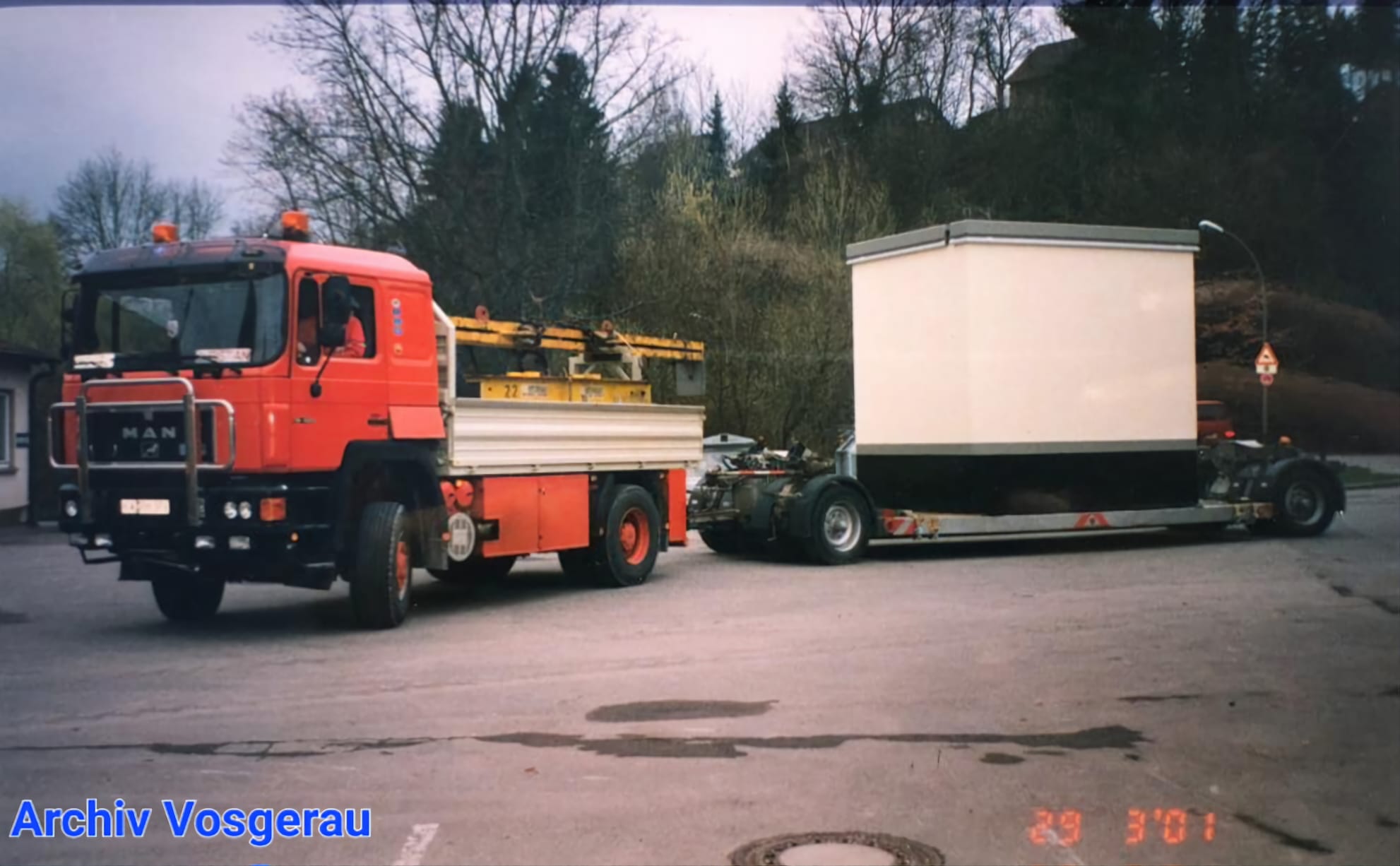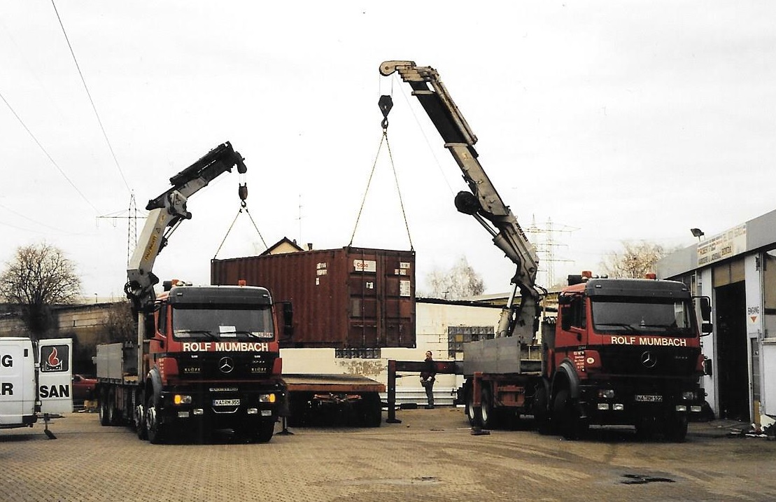 die 2 MAN waren nicht von Rolf Mumbach. Es gab einen 3achser Pritschenwagen mit Kran, der hatte aber die übliche 6,5m Pritsche drauf und 3 hohe Bordwände seitlich