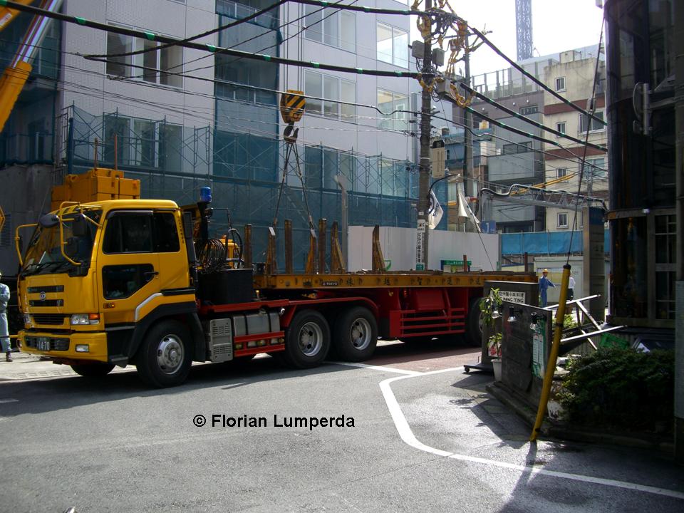 Schicker Kran in Tokio.... KATO NK3600 (360to) auf 12x6 Fahrgestell auf Nissan Diesel und Begleitfahrzeug, ebenfalls Nissan.