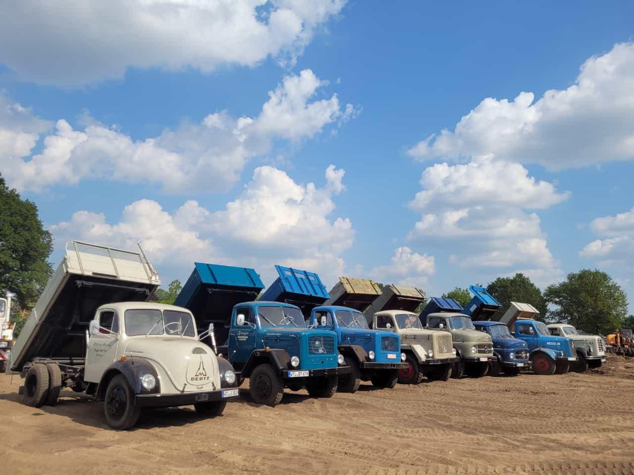 Einige hundert historische Nutzfahrzeuge, vom Sattelzug über Hängerzüge, Möbelwagen, Kippfahrzeuge, Seilbagger , Radlader, Raupen und Kettenfahrzeuge sowie viele andere seltene Fahrzeuge, waren bei uns für ein langes Wochenende zu Gast.