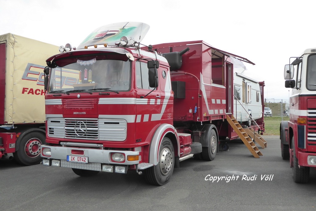 Als Vertreter der BS-Reihe mit stehendem Motor hier der schicke BS 16 Tanksattelzug, der jetzt zweimal kurz hintereinander aus dem Süden angereist war, er war ja auch in Braunschweig. Ich hatte das Vergnügen, mit ihm die üblichen Runden auf der Rennstrecke mitfahren zu können. Zum Glück konnte ich Besitzer Gerd überzeugen, daß er nicht absattelt, weil das komplette Gespann doch viel besser wirken würde, auch auf der Rennstrecke