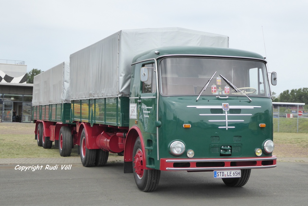 Als Vertreter der BS-Reihe mit stehendem Motor hier der schicke BS 16 Tanksattelzug, der jetzt zweimal kurz hintereinander aus dem Süden angereist war, er war ja auch in Braunschweig. Ich hatte das Vergnügen, mit ihm die üblichen Runden auf der Rennstrecke mitfahren zu können. Zum Glück konnte ich Besitzer Gerd überzeugen, daß er nicht absattelt, weil das komplette Gespann doch viel besser wirken würde, auch auf der Rennstrecke