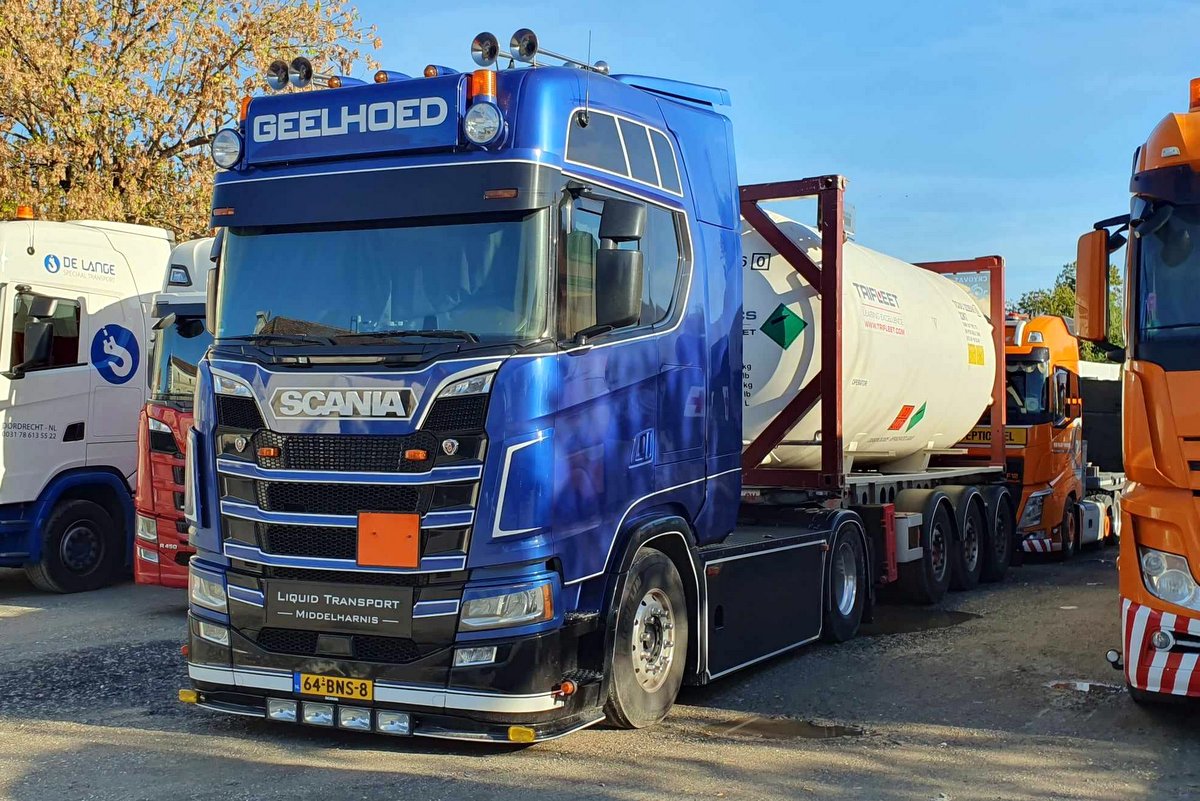 Scania S450 Next gen. von "Geelhoed" bei der Sonntagsruhe in Montlieu la Garde.