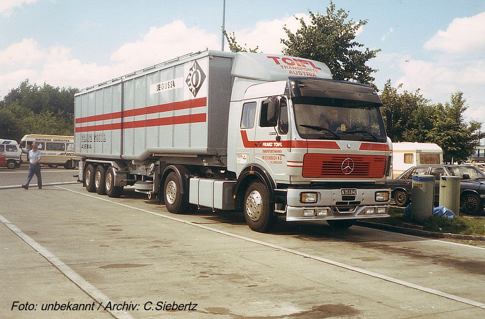 Das Foto zeigt einen Mercedes-Benz NG 1644 von Franz Toifl aus Miesenbach, als der noch Ruß für die Degussa international transportierte.