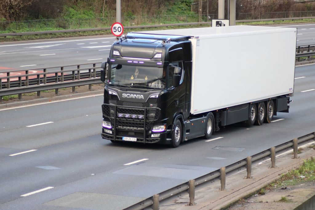Mir unbekannter Scania NG Kuehler aus dem Kreis Aalen zu Besuch bei mir auf der Insel winke
