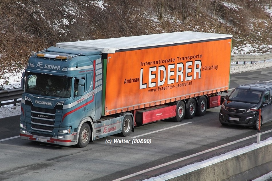 Mächtiger Scania NG 770S von A. Ebner mit Lederer-Auflieger / Flachgau 2024: |