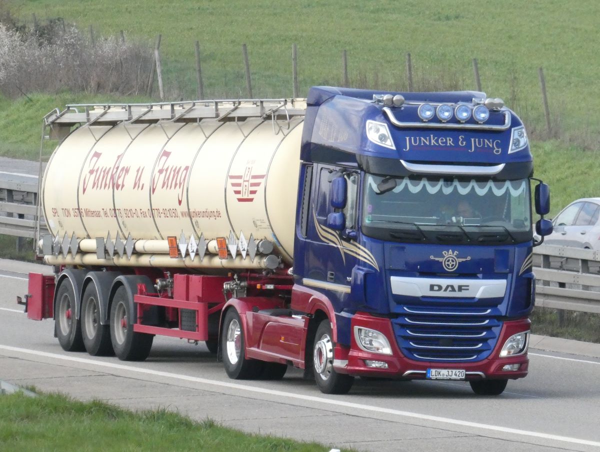 Speziell für Günter. DTS mit ex-Hoyer Auflieger am 23.07.19, wie immer bei mir mit DAF. Es gibt aber auch mindestens einen Iveco S-Way, den ich leider in die Gegenrichtung habe fahren sehen. Wenn jemand ein Bild hat, her damit! großes Grinsen