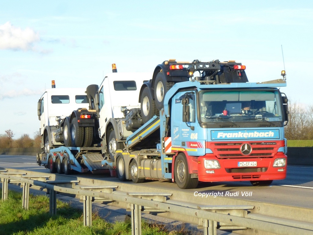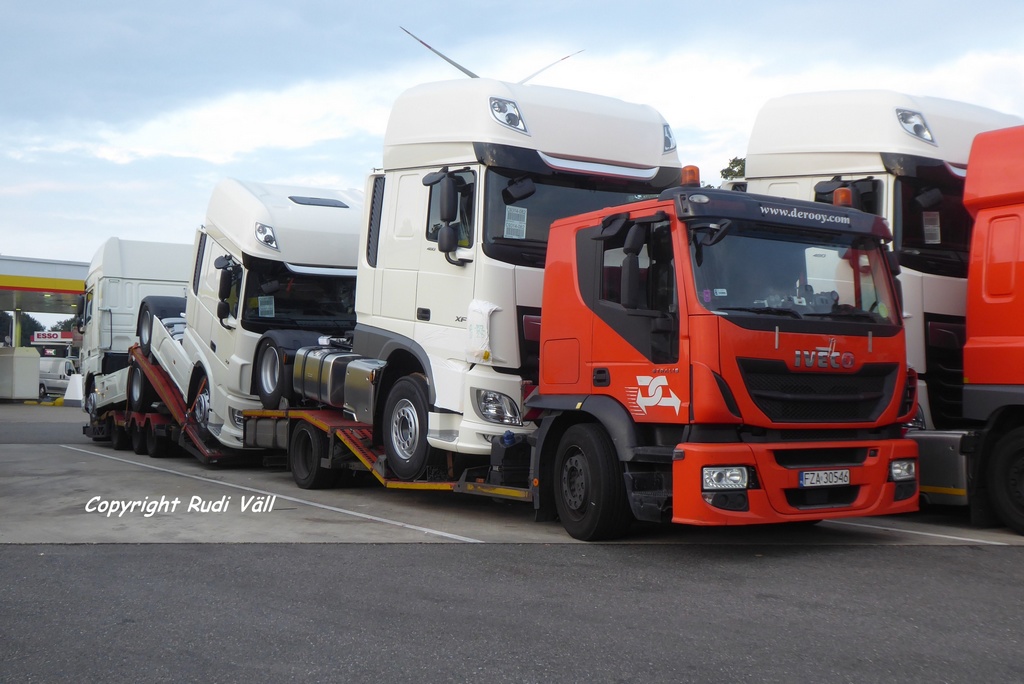 im November 2018 habe ich an zwei verschiedenen Tragen denselben Volvo FH460Globetrotter LKW-Transportzug von Schmidt im DHL-Livrée erwischt. Zuerst mit zwei großen Street Scooter XL als Ladung, dann zwei Wochen später mit vier kleinen Street Scootern.
