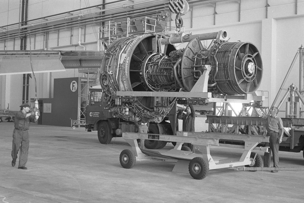 Hier wurde ein Flugzeugtriebwerk General Electric CF6-50, wie es für die Maschinen Boeing 747 und McDonnell Douglas DC 10 zu jener Zeit Verwendung fand, auf einen extra für dieses Aggregat ausgerüsteten Tieflader verladen. Selbst die Plane hatte einen speziellen Zuschnitt.