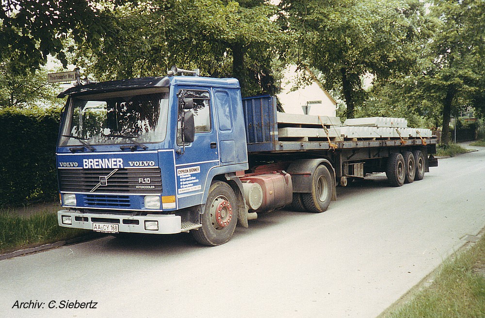 im Sommer 1989 entstand im Augsburger Stadtteil Oberhausen, diese Aufnahme eines Volvo FL 10 des Baustoffunternehmens Cyprian Brenner aus dem Raum Aalen.