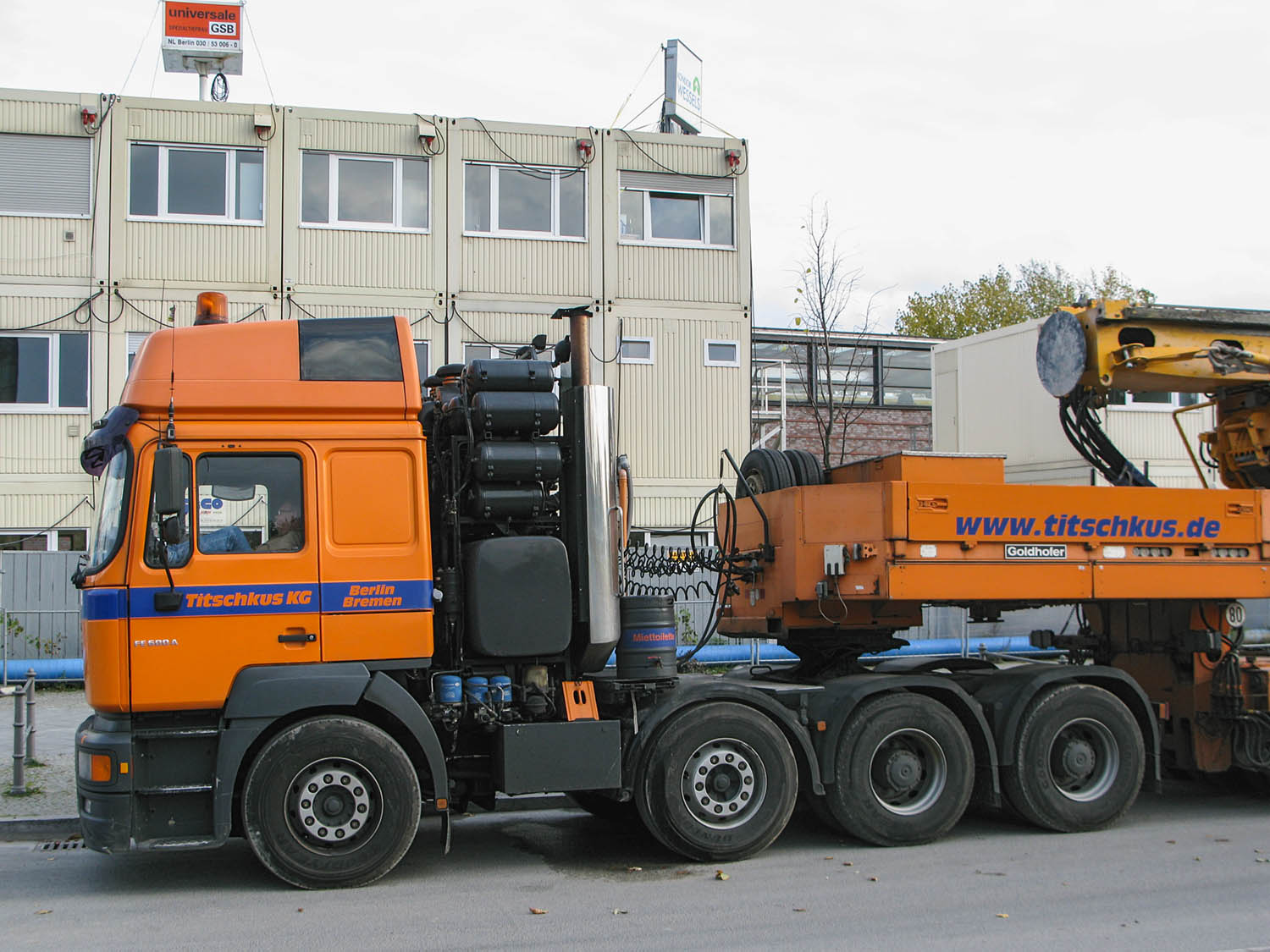 Im Oktober 2008 steht er mit dem Goldhofer Tieflader und einem Bauer BG 36 H an der Baustelle neben dem neuen U-/Hochbahnhof Mendelssohn-Bartholdy-Park Nähe Potsdamer Platz.