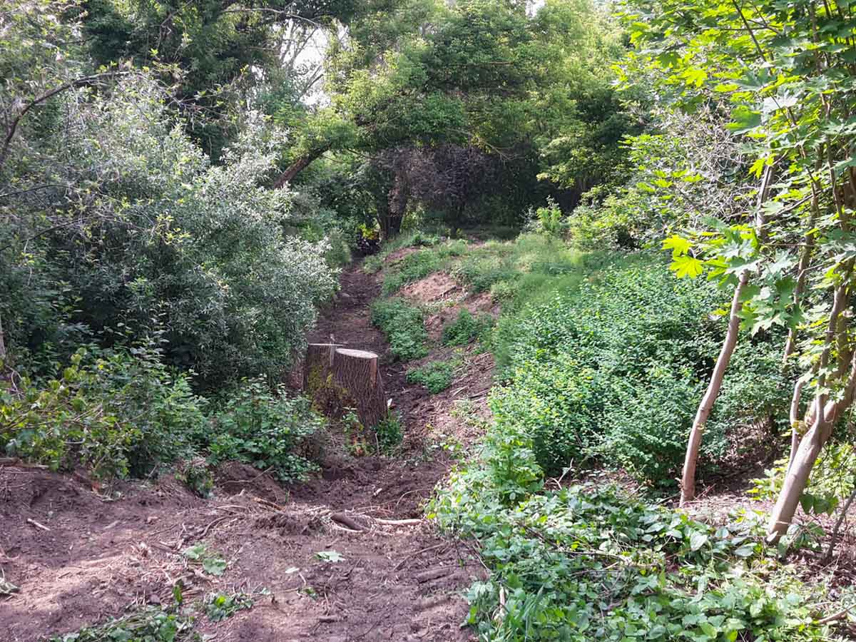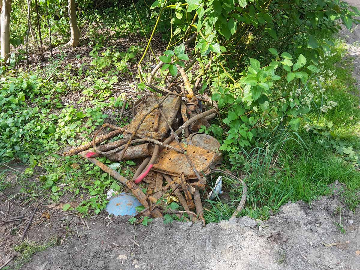 Daher nur 2 Fotos von dem Graben und dem Schrott, der sich auf wundersame Weise darin gesammelt hat.