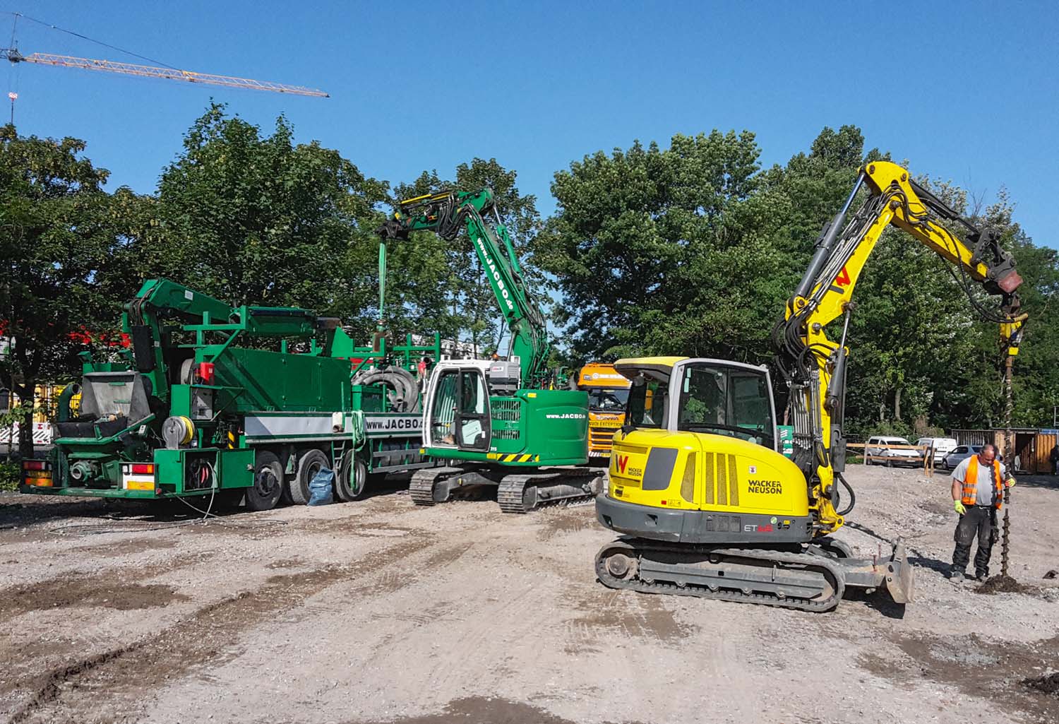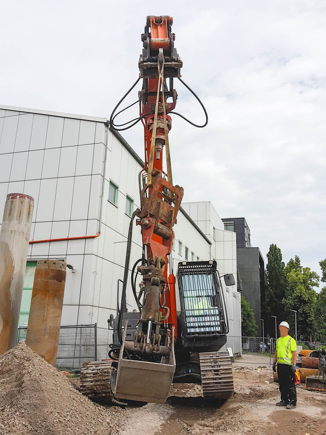 Schöne Bilder daumen . Jacbo scheint in einem neuen Zaxis 11135 als Begleitbagger für das Bohrgerät investiert zu haben. Bei den ganzen Hydraulikschläuchen, an der Seite des Löffelstieles scheint der auch zusätzliche Kreisläufe zu haben.