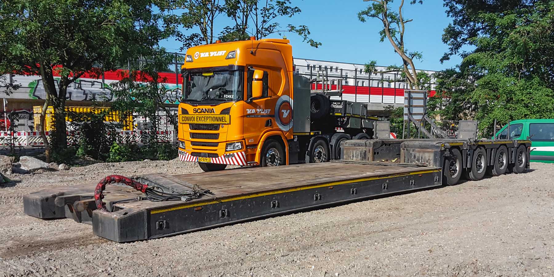 Dafür mussten alle Rungen und Klappen vom Tieflader demontiert werden, nur die Rampen konnten noch dranbleiben.