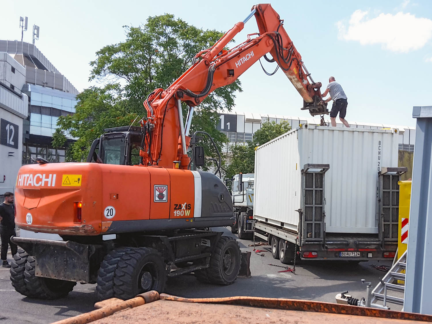 … außerdem musste heute ein 20-Fuß-Container zur Messe, um die vielen Werkzeuge und Maschinen dort besser zu sichern.