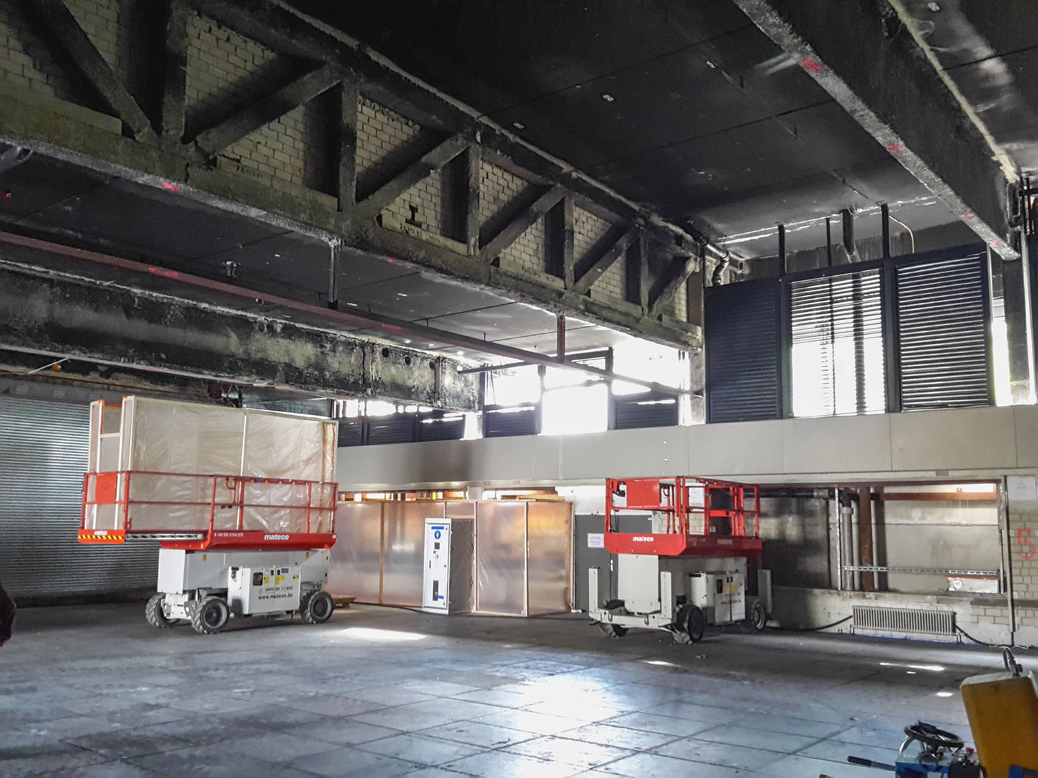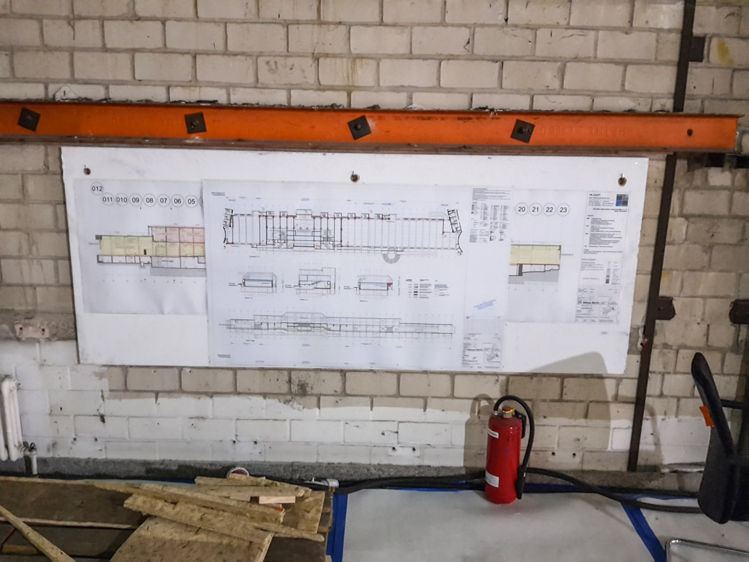 hier waren auch noch ein paar Fotos aus den von Altlasten befreiten Messehallen mit Lageplänen, Schleifmaschinen usw. – wen's interessiert.