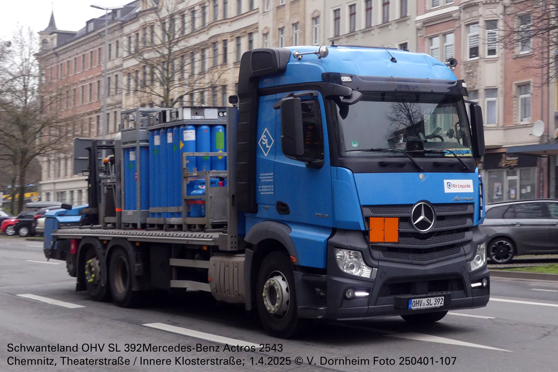 Schwanteland OHV SL 392 Mercedes-Benz Actros 2543 am 1.4.2025 in Chemnitz.