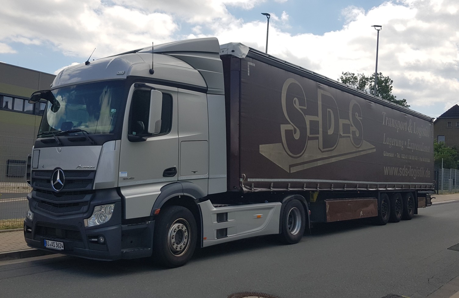 Etwas ungünstige Lichtverhältnisse - Mercedes Actros StreamSpace von Schwabenholz Holzfachmarkt aus Mertingen.