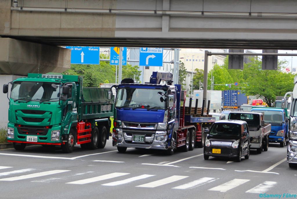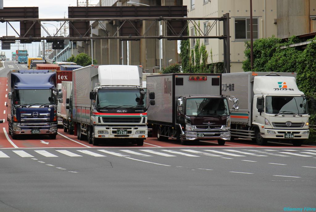 Die Fuso Zugmaschine gefällt, der Kühllaster auch (trotz Bagatellschaden, die man in Japan fast gar nicht sieht) und der Isuzu Tanker ebenso.