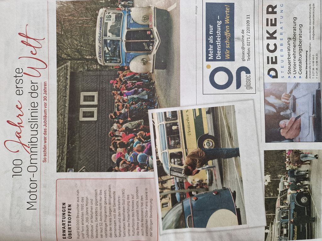 Zum Ende der Seite springen 130 Jahre weltweit erste Motor Omnibuslinie in Netphen Deuz / Siegerland