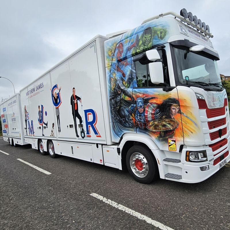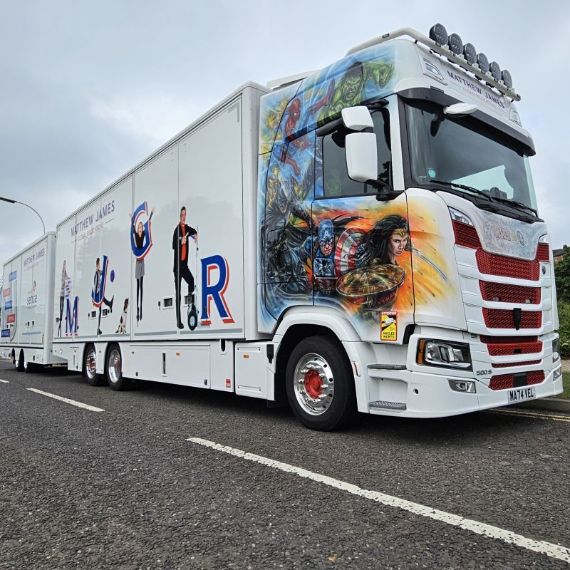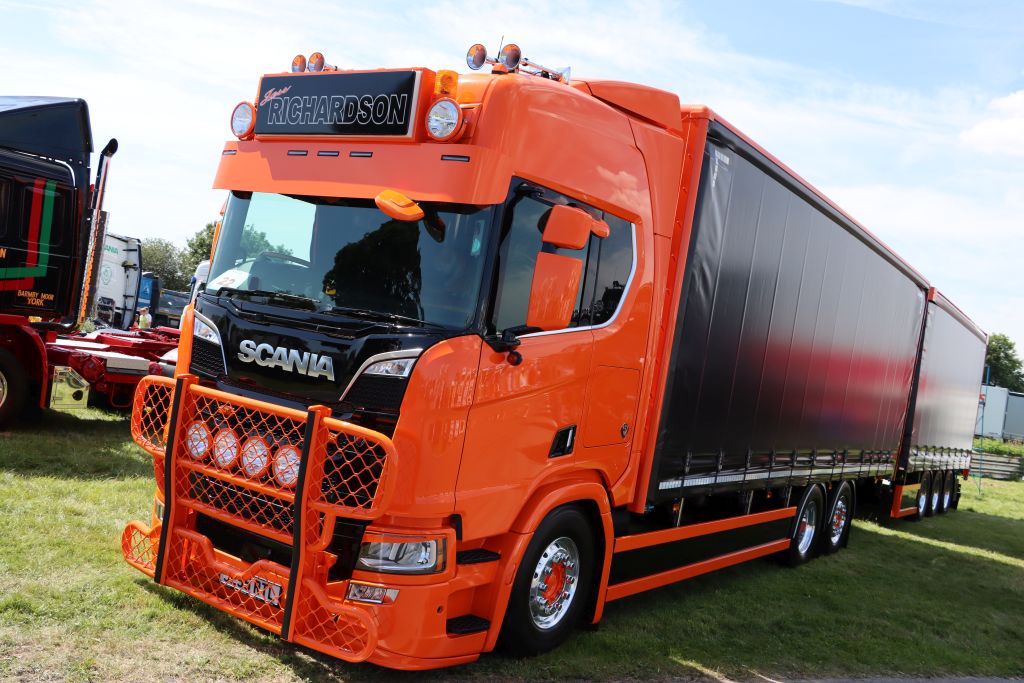 Schoener Scania Next Gen aus Yorkshire/UK fotografiert vor 14 Tagen bei "Full of the Pipe" 2025 beim Mondello Racetrack, Naas, Co. Kildare, Ireland