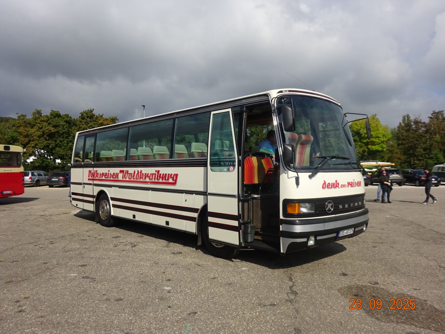 Setra der 200er Reihe waren mehrere zu sehen, darunter auch wieder der S 215 UL Bahnbus aus der Hallertau.