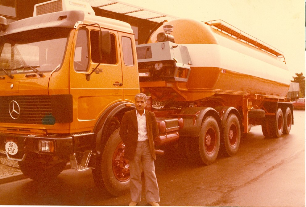 | Sehr schöne Erinnerung, Viktor, das ist ein Köhler Zementsilo. Die Dinger habe ich in den 70ern dor untenverkauft. Hauptsächlich Iraq, aber auch Syrien. Hier das allererste Auto, was ich 79 als frisch gebackener Untenehmer nach Arbil im Nordiraq gebracht habe. In Fulda war der 400 Liter-Tank leer. Oh Schreck, zum Glück hatte ich noch 2000 Liter EL im Silo. Hab dann mit einem Einer etwas umgefüllt, dass ich erstmal zum Riedener Wald kam. Hab dann bei MB in München den Kraftstoffverbrauch reklamiert. Daraufhin meinte der Meister: Ach du bist das mit dem Krüppel: Fahr halt etwas vorsichtiger mit dem Gaspedal.