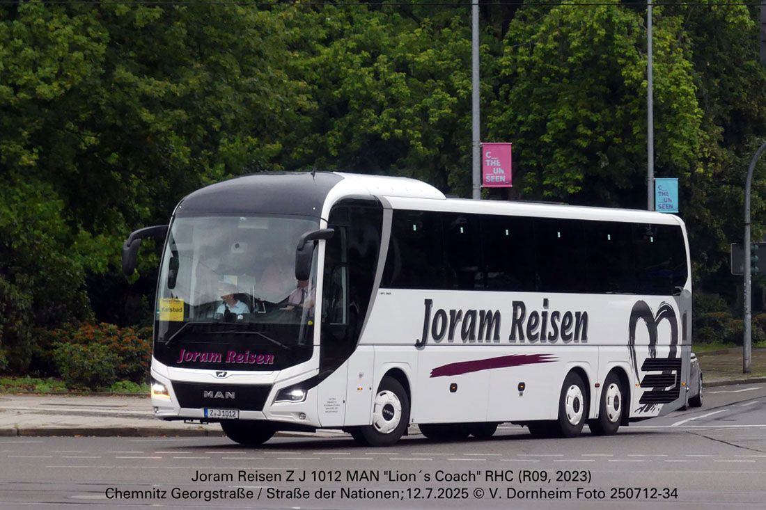 Joram Reisen Z J 1012 MAN "Lion´s Coach" RHC (R09, Baujahr 2023) am 12.7.2025 in Chemnitz.