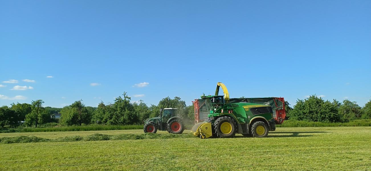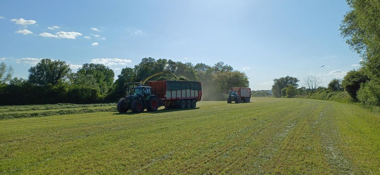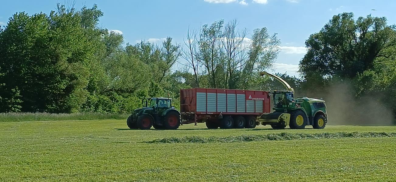 Das gleiche Unternehmen holt an diesem Tag auch Gras ins Silo.