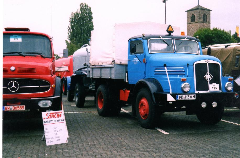 Damit man es mir auch glaubt häng ich gleich die Foto´s noch dran, da steht es auf dem Kühlergrill geschrieben... Das auf dem 2. Foto ist eine H6 Zugmaschine...