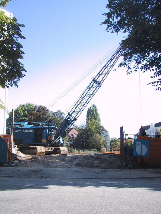 das Gerät von Otto Dörner Erdbau auf einer Baustelle in Hamburg Ottensen, ganz in der Nähe seiner Geburtsstätte smile (Fotos aus dem Jahr 2002)