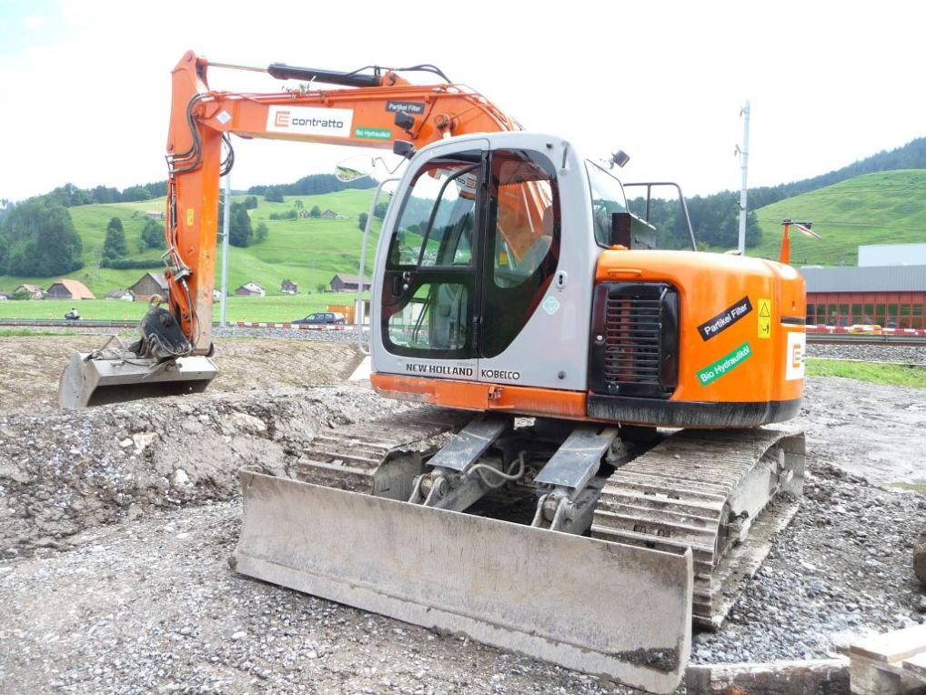 New Holland E 135 mit engcon un Plastik - Kettenplattenadapter |