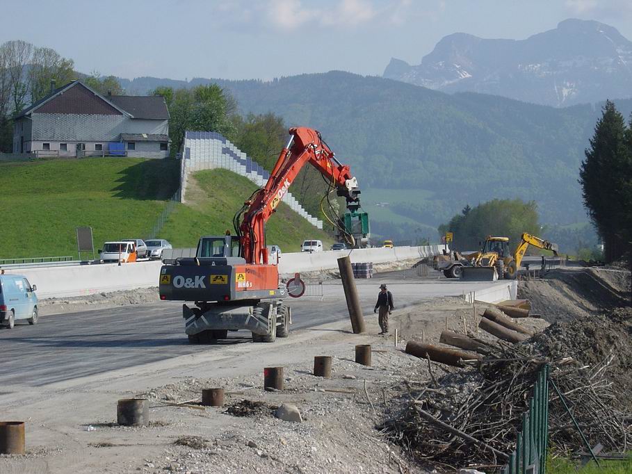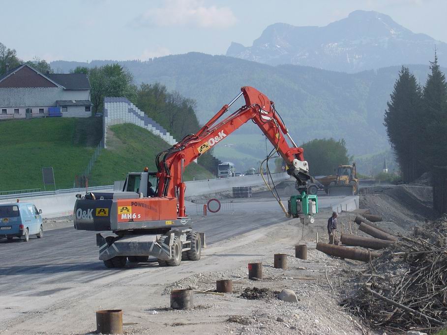 Hier mal wieder MH 6.5 Powerline auf einer Autobahnbaustelle beim Eisenrohre einsetzen für die Sichtschutzwände.
