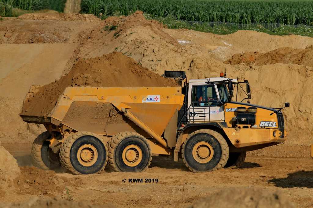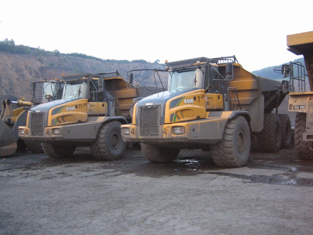 Zwei Bell B50D in einem Steinbruch im Sauerland - hier werden die Dumper zum Materialtransport von der Wand zum Brecher bzw. zum Abraum fahren eingesetzt.