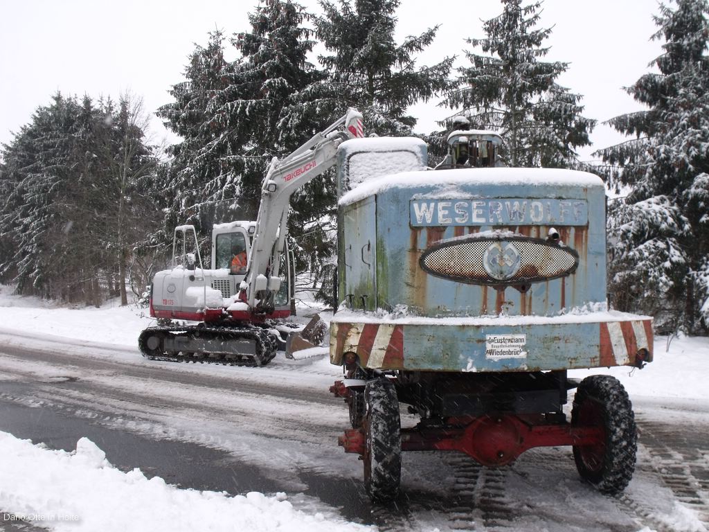 Drei Männer machen sich auf den Weg in einen kleinen Ort namens Alswede. Ihr vorhaben ist es dort den Versuch zu starten einen Weserhütte Weserwolff Mobilseilbagger wieder in Betrieb zu nehmen. Ein Sprinter voll gespickt mit Werkzeug, Kompressor, Stormerzeuger und etlichen dosen Rostlöser soll Sie dabei unterstützen.
