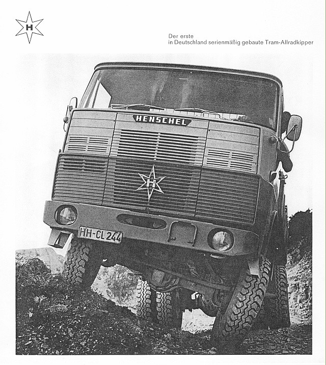 Nun aber die "Ausnahme" - in der SCHWEIZ als wichtigem Henschel-Exportland legte man offenkundig sehr hohen Wert auf "ungeteilte Sicht"... der Druck war so stark, daß die nach CH exportierten Henschel-Allrad-Frontlenker ohne Mittelsteg auskommen mußten.