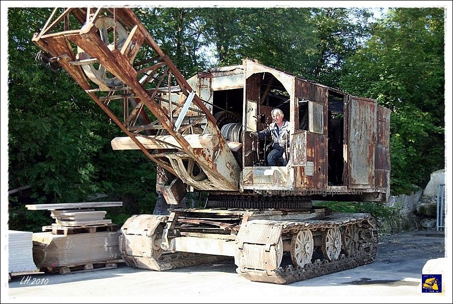 Wie Leo schon gesagt hat, ist das (mit Ausnahme der noch existierenden Dampfbagger) der älteste einsatzfähige Menck überhaupt. Zu seiner Bauzeit, gab es noch Kastenausleger. Es wäre besonders schön, wenn es gelänge, den Bagger wieder mit einem solchen auszurüsten.