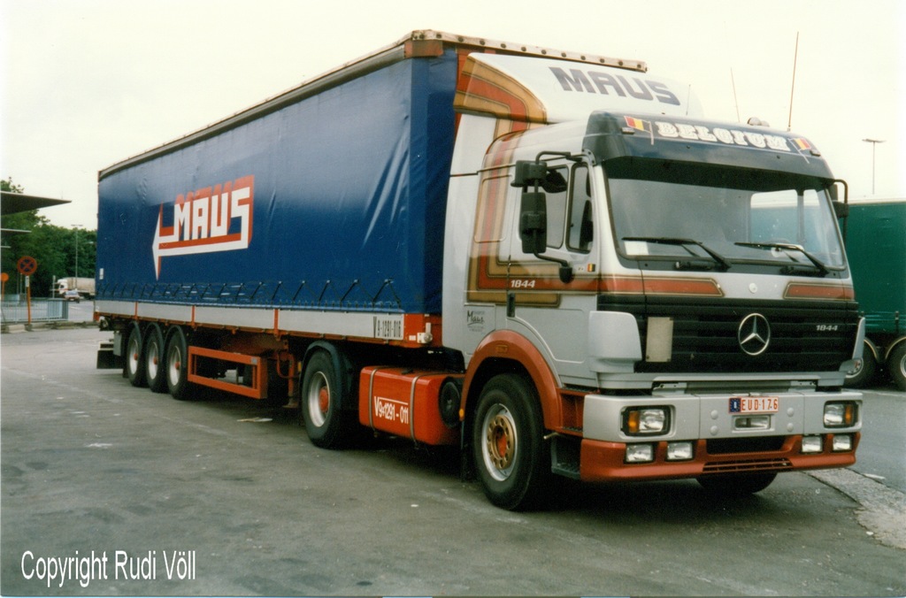 bei der Spediton Maus aus der Belgischen Eifel war im Mai 1997 u.a. dieser schöne 1944LS Pritschensattelzug im Einsatz.