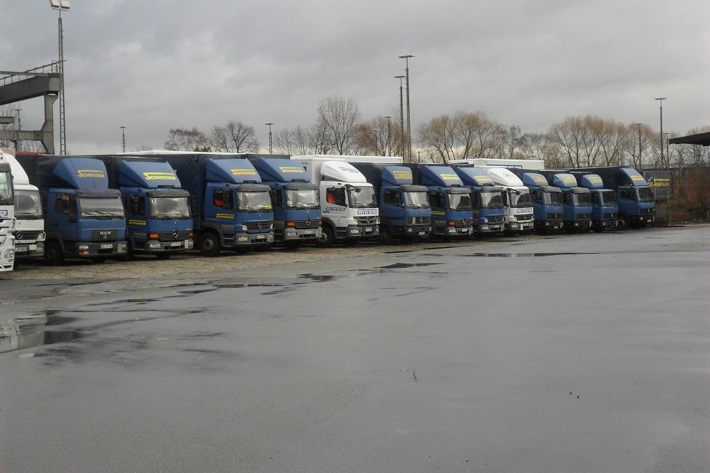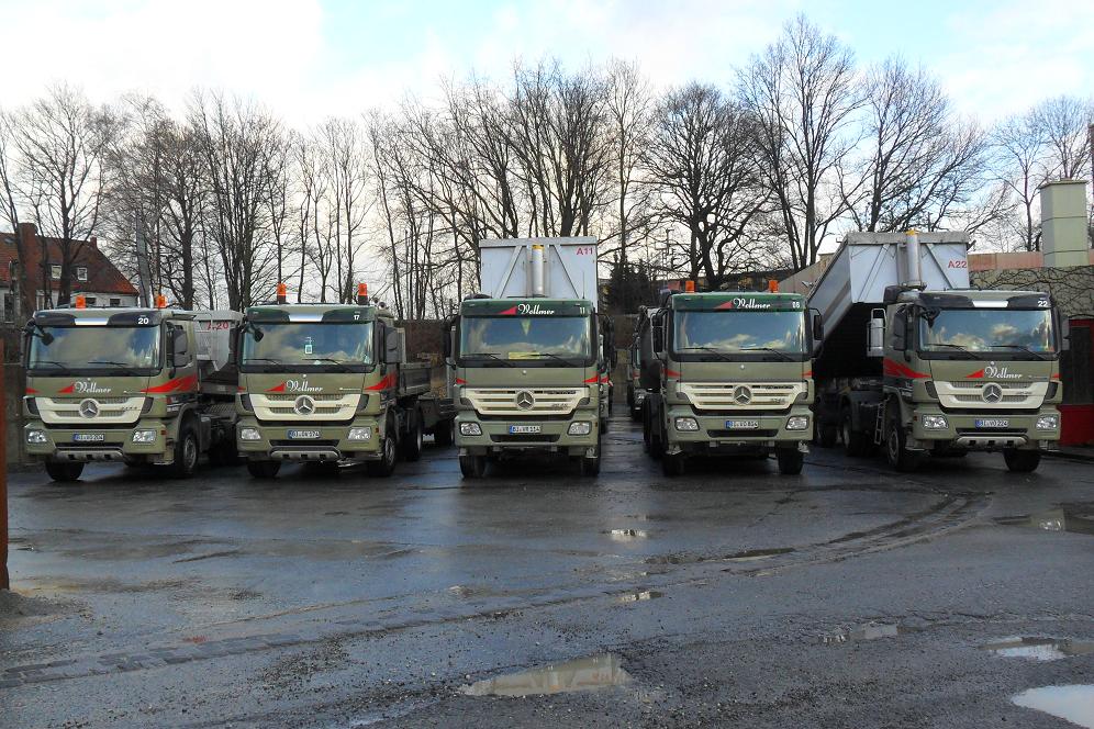 Das ist die Firma Vollmer aus Bielefeld. Sie transportiert Baustoffe (Sand,Kies & etc) und Container. Das Bild zeigt nur einen kleinen Teil der Fahrzeugflotte.