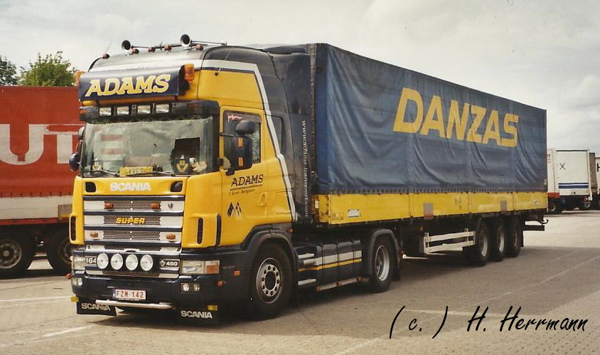 mit ihren gelben mit blauen Streifen versehenen Scanias ???