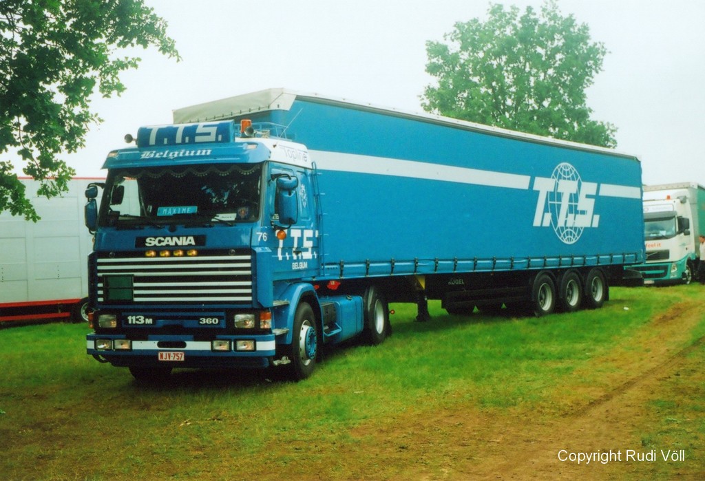 im August 2011 habe ich beim Truckerfestival im Belgischen Bekkevoort diesen R113M360 Topline Pritschensattel von TTS fotografiert.