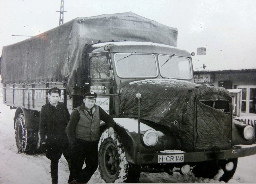 ich hab da auch noch einen. Unser erster Fernverkehrszug ca. 53/54 in Österreich beim Holzladen für einen Kunden in Hannover.