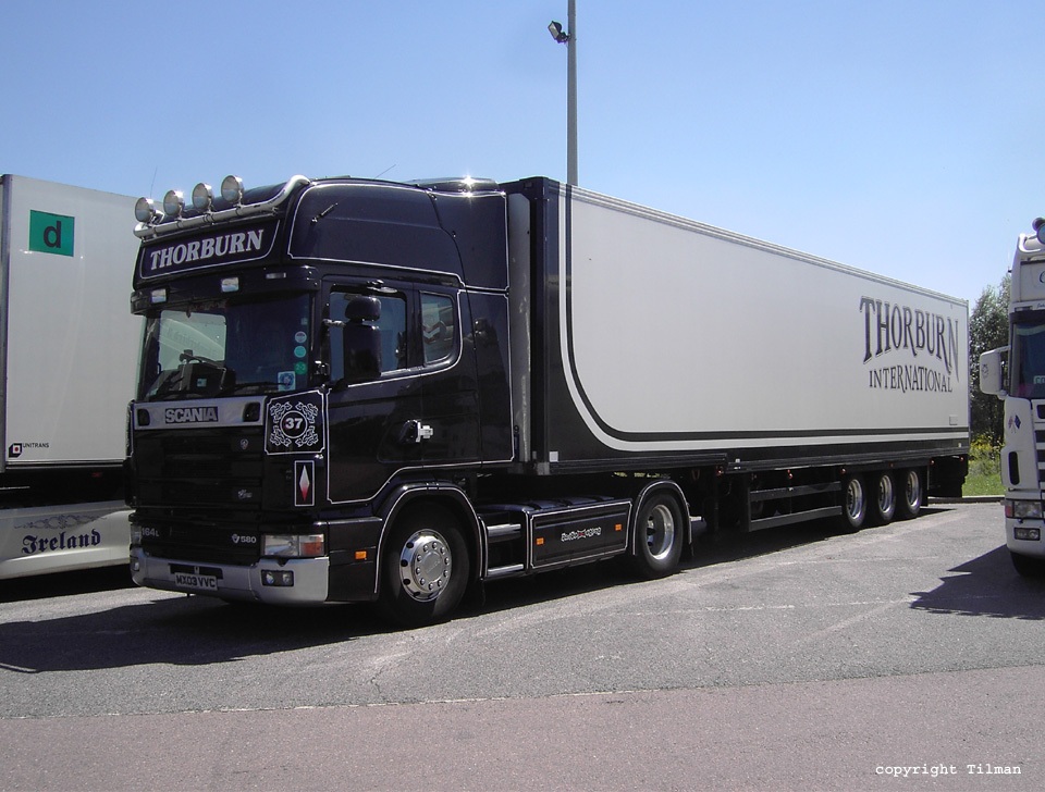 Von mir ein DAF 95XF von B.K.G. Transport und ein Scania R164 mit 580 PS von Thorburn. Was für ein Geschoss... prost