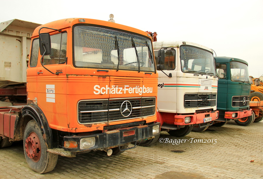 Mercedes LP 2232 6x4 von Links, als Sattelzug,Kranwagen und Kipper.