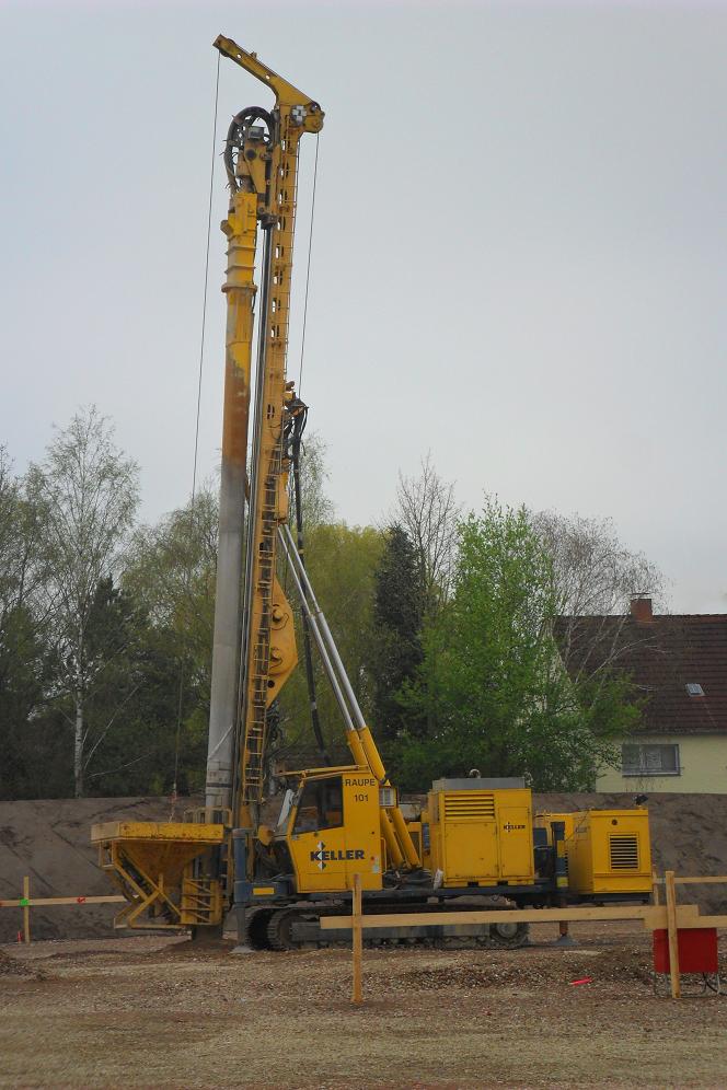 Bei der Maschine von Keller Grundbau handelt es sich um ein gerät welches Schottersäulen im Boden herstellt.